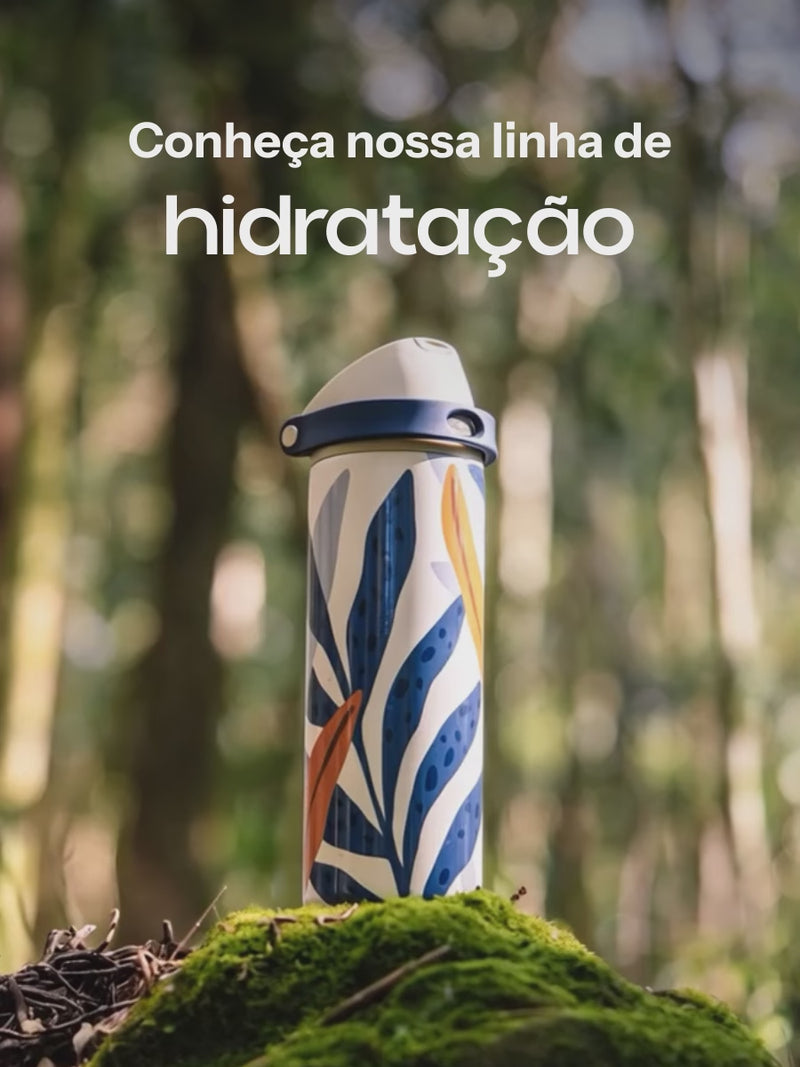 Garrafa Duo Flow Estampada Jhenny Keller 710ml - Cáqui e Marinho