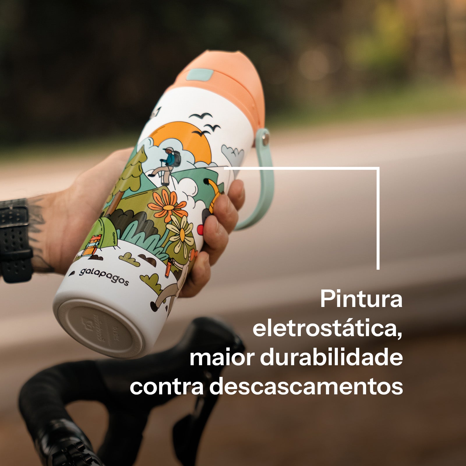 A Tampa Duo Flow foi projetada para oferecer versatilidade e praticidade. Com um sistema de dupla abertura, você escolhe entre o canudo retrátil, perfeito para beber em movimento sem precisar inclinar a garrafa, ou o bocal tradicional, ideal para uma hidratação mais rápida.