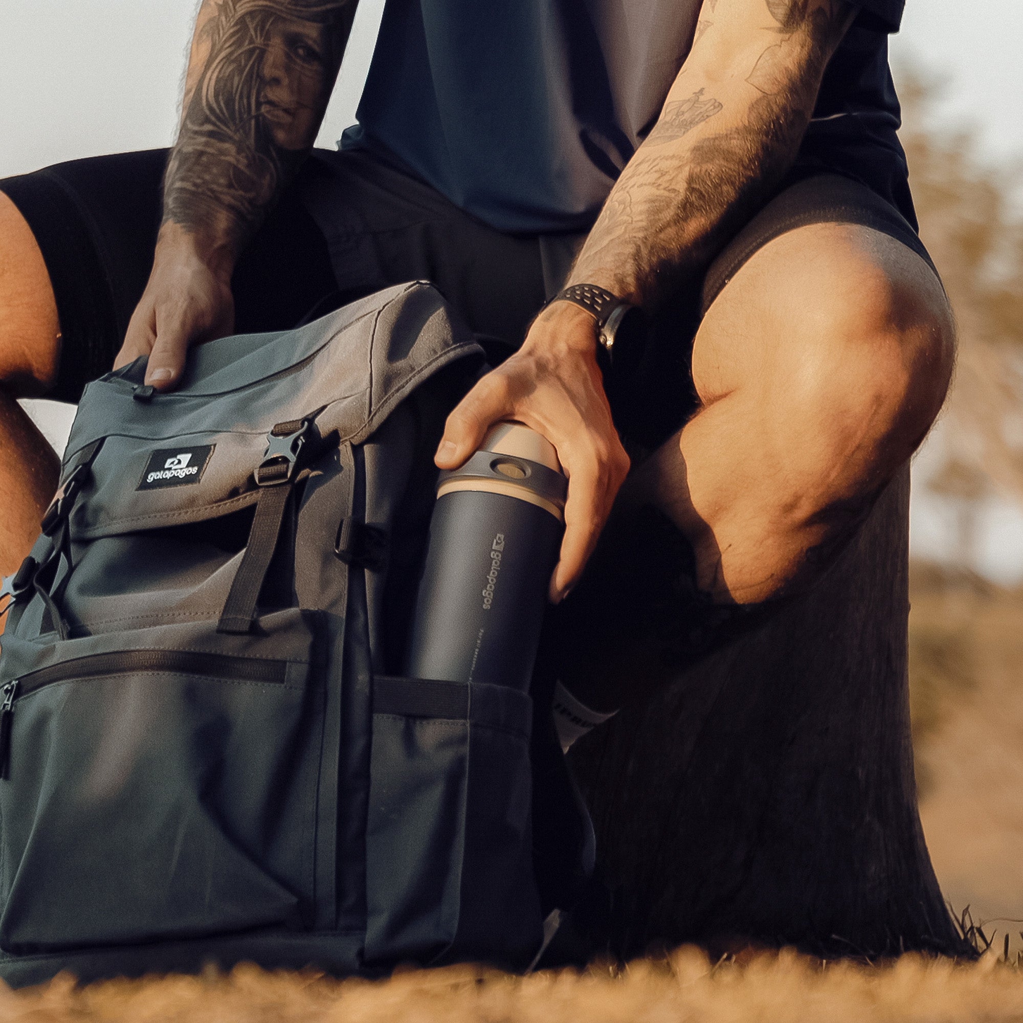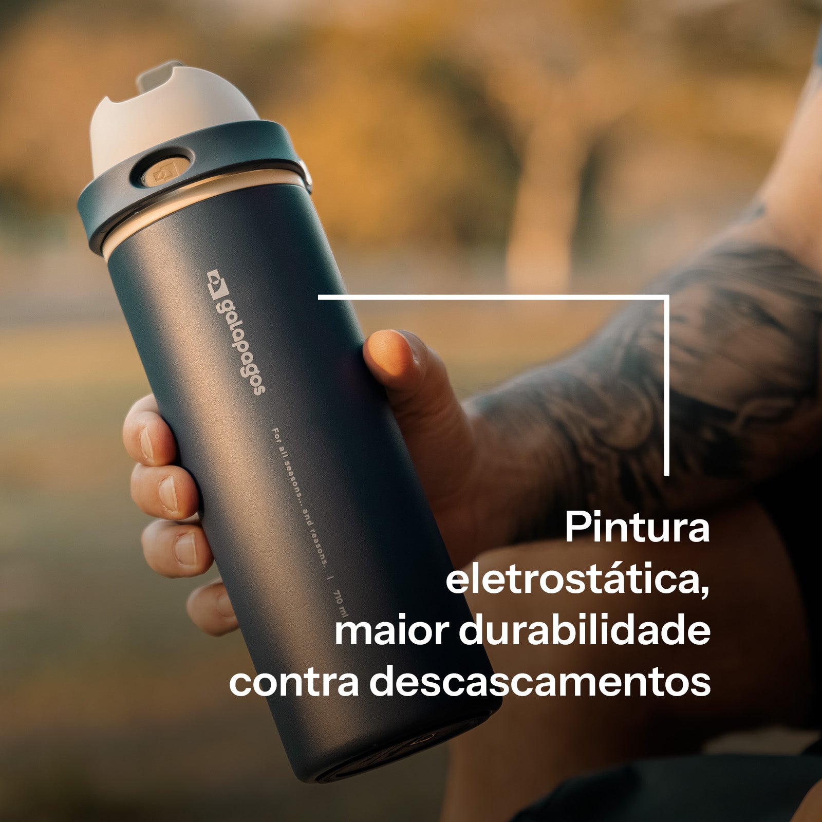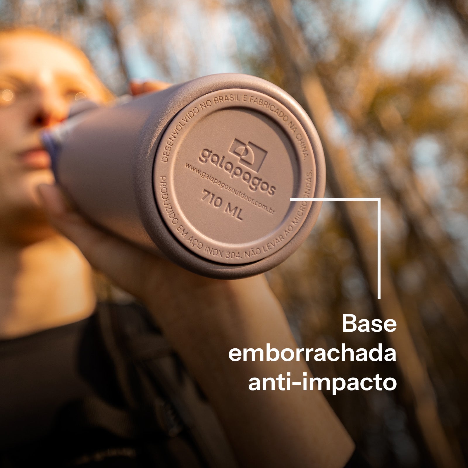 Vazar água na mochila? Nunca mais! A tampa à prova de vazamentos garante segurança total no transporte, enquanto a base emborrachada anti-impacto traz mais estabilidade para suas aventuras diárias.