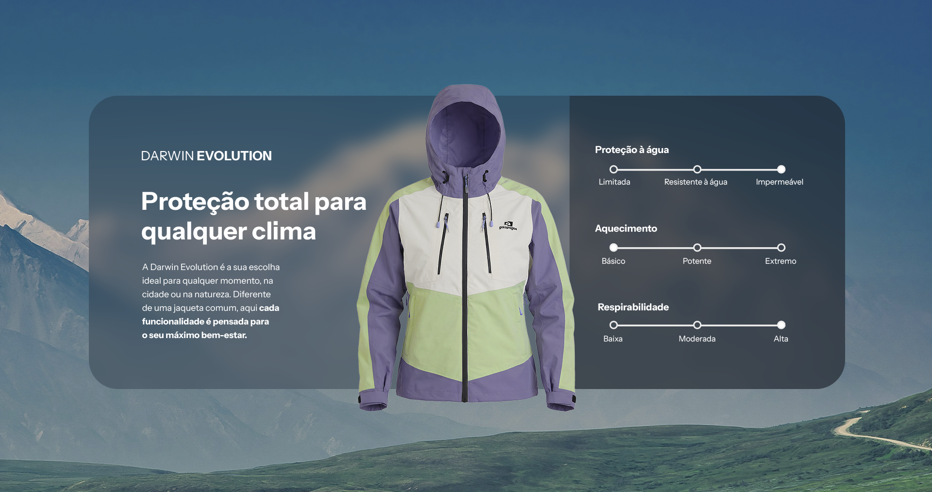 A Jaqueta Impermeável Darwin Evolution é a escolha ideal para quem busca equipamentos outdoor confiáveis com desempenho técnico para te manter protegido em qualquer ambiente.