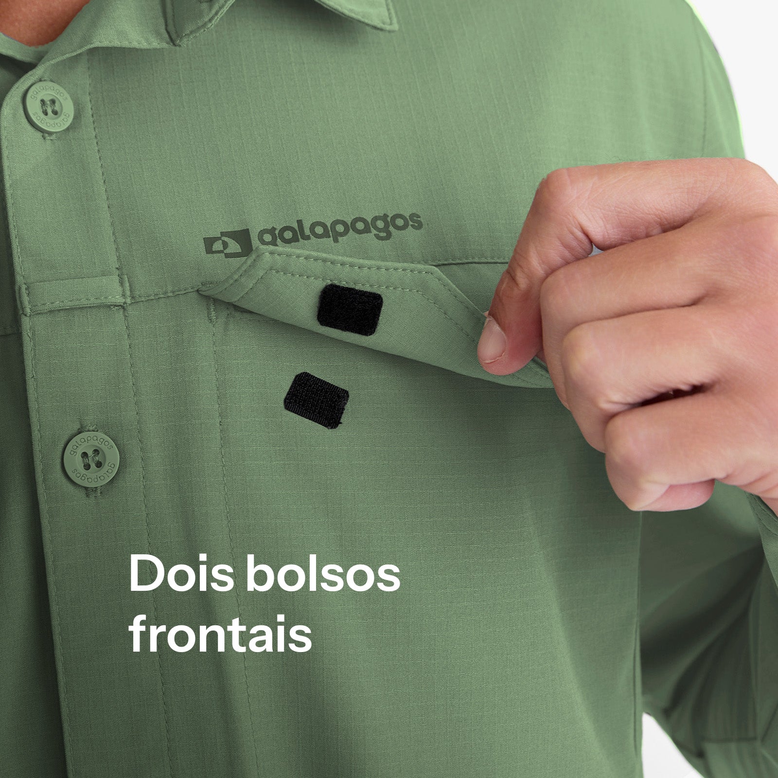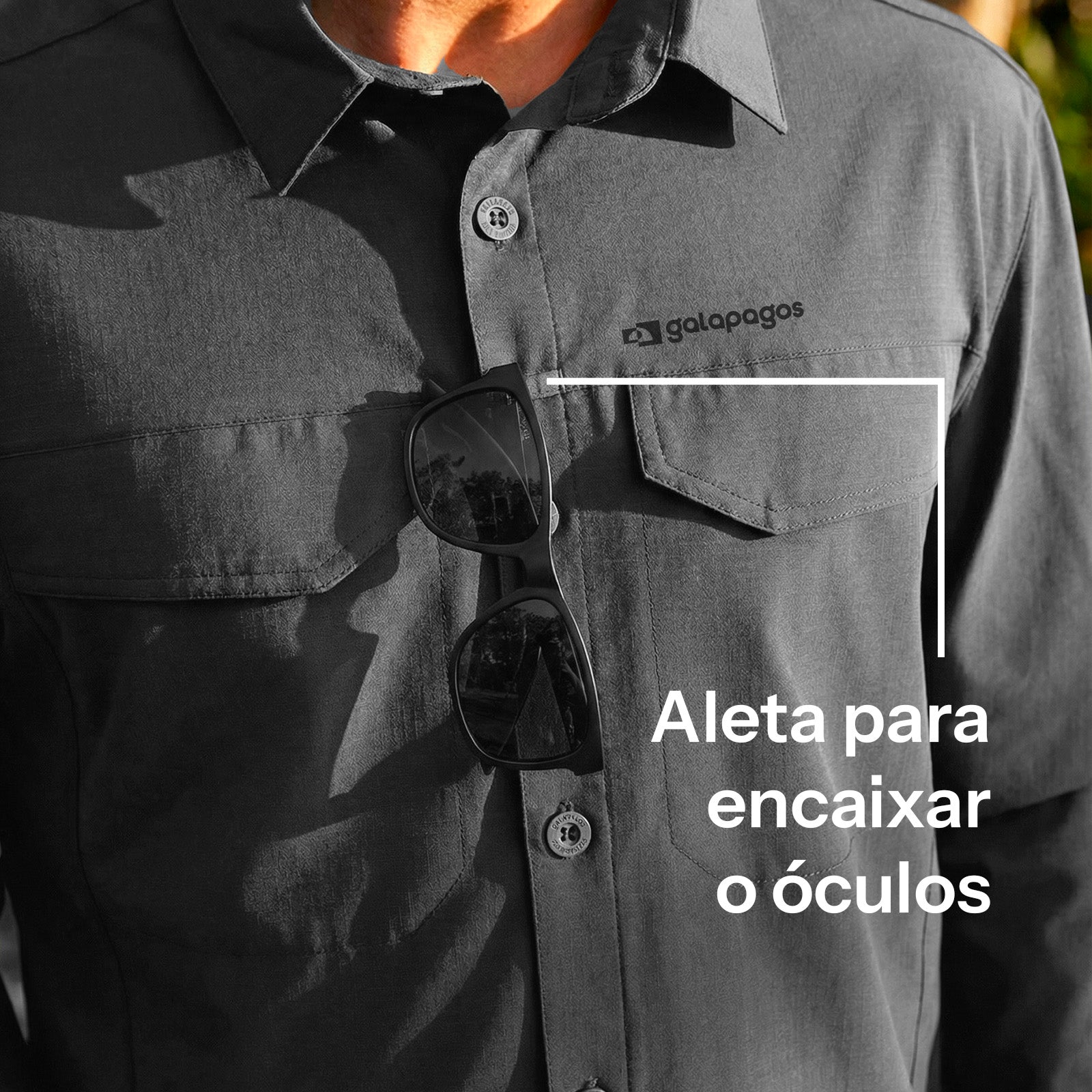 Camisa manga longa com maringale para ajuste, modelagem regular e abertura traseira com forro em mesh que permite a entrada e saída do ar. Seu tecido Rip Stop é leve, com Tecnologia Breathable e UV Protection garantindo a proteção contra raios UVA e UVB 50+.