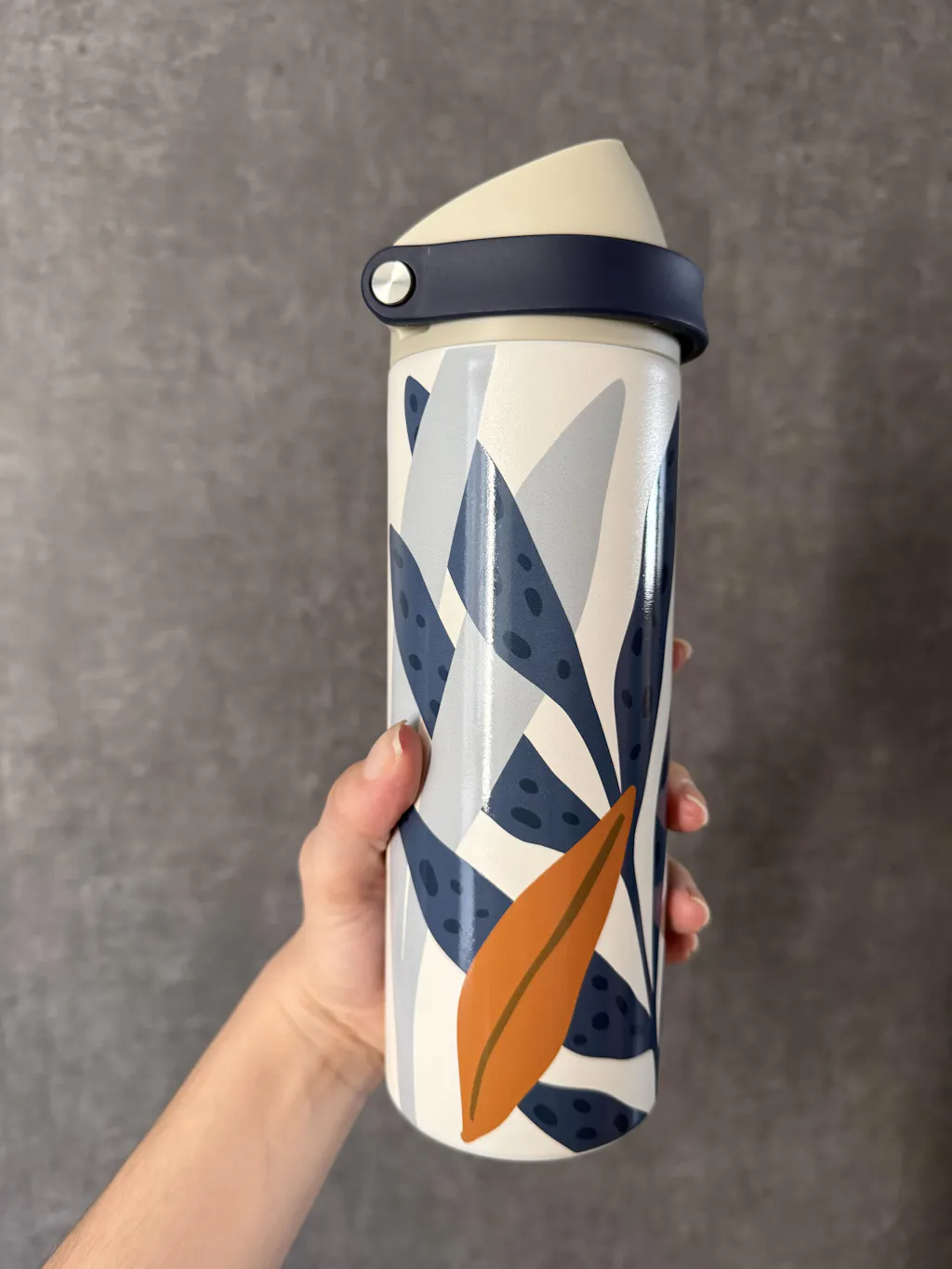 Garrafa Duo Flow Estampada Jhenny Keller 710ml - Cáqui e Marinho